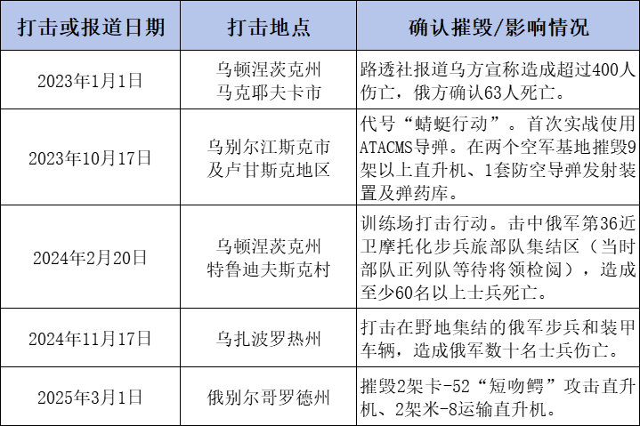 2023年1月到2025年12月乌克兰使用“海马斯”战果举例,来源:公开媒体报道。